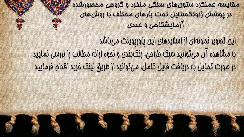 پاورپوینت مقایسه عملکرد ستونهای سنگی منفرد و گروهی محصورشده در پوشش ژئوتکستایل تحت بارهای مختلف با روشهای آزمایشگاهی و عددی