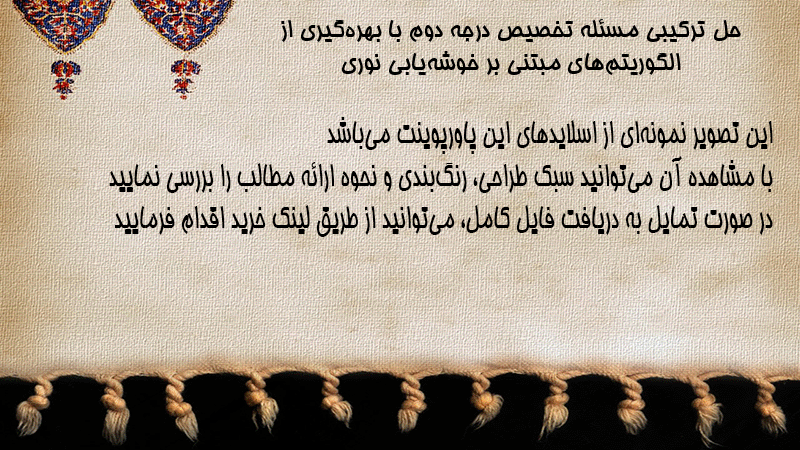 پاورپوینت حل ترکیبی مسئله تخصیص درجه دوم با بهرهگیری از الگوریتمهای مبتنی بر خوشهیابی نوری