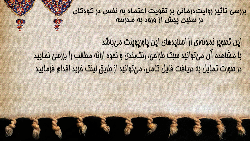 پاورپوینت بررسی تأثیر روایتدرمانی بر تقویت اعتماد به نفس در کودکان در سنین پیش از ورود به مدرسه