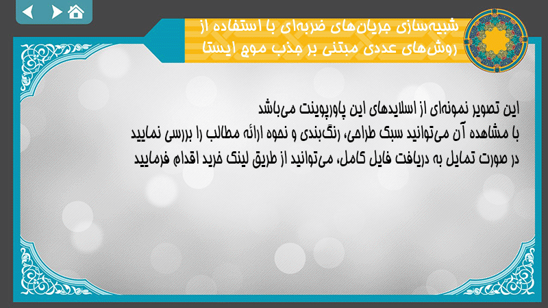 پاورپوینت شبیهسازی جریانهای ضربهای با استفاده از روشهای عددی مبتنی بر جذب موج ایستا