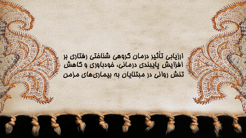 پاورپوینت ارزیابی تأثیر درمان گروهی شناختی رفتاری بر افزایش پایبندی درمانی، خودباوری و کاهش تنش روانی در مبتلایان به بیماریهای مزمن