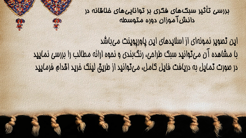 پاورپوینت بررسی تأثیر سبکهای فکری بر تواناییهای خلاقانه در دانشآموزان دوره متوسطه