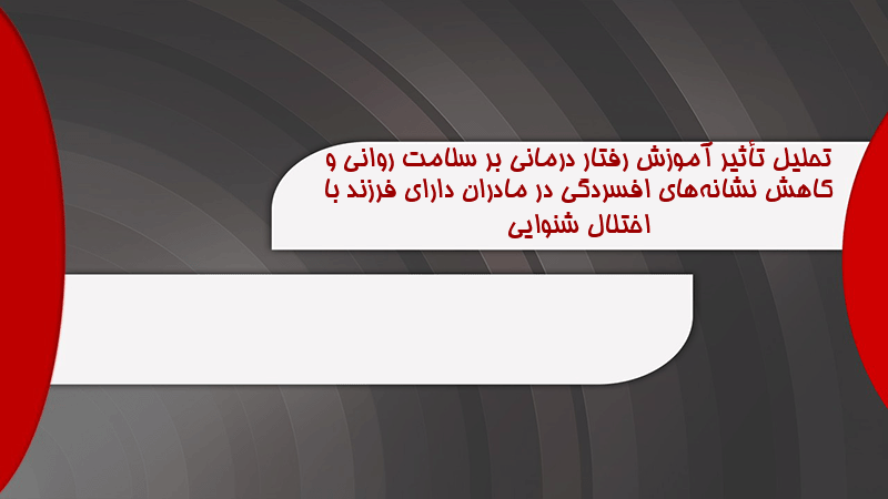 پاورپوینت تحلیل تأثیر آموزش رفتار درمانی بر سلامت روانی و کاهش نشانههای افسردگی در مادران دارای فرزند با اختلال شنوایی