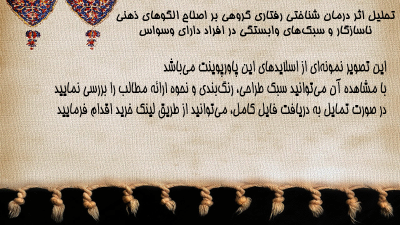 پاورپوینت تحلیل اثر درمان شناختی رفتاری گروهی بر اصلاح الگوهای ذهنی ناسازگار و سبکهای وابستگی در افراد دارای وسواس