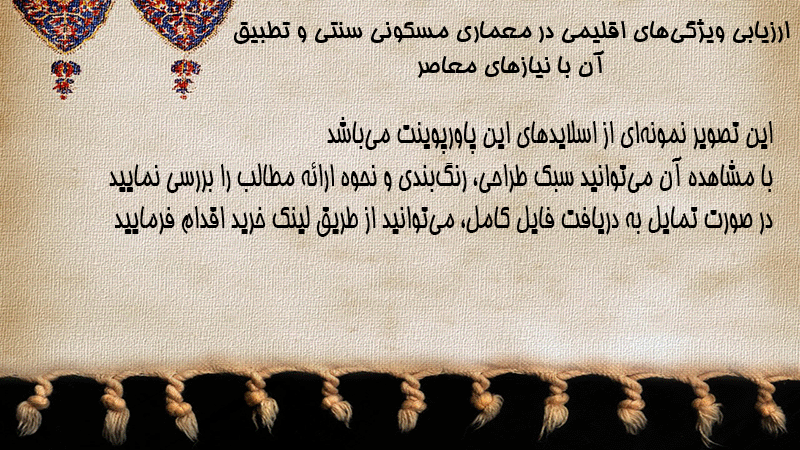 پاورپوینت ارزیابی ویژگیهای اقلیمی در معماری مسکونی سنتی و تطبیق آن با نیازهای معاصر