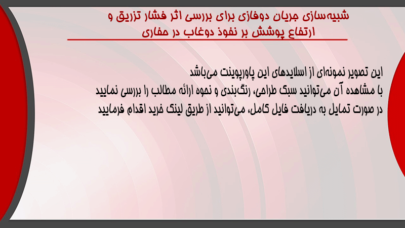پاورپوینت شبیهسازی جریان دوفازی برای بررسی اثر فشار تزریق و ارتفاع پوشش بر نفوذ دوغاب در حفاری