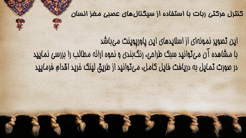 پاورپوینت کنترل حرکتی ربات با استفاده از سیگنالهای عصبی مغز انسان