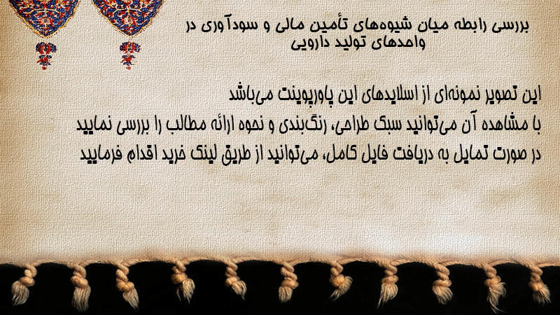پاورپوینت بررسی رابطه میان شیوههای تأمین مالی و سودآوری در واحدهای تولید دارویی