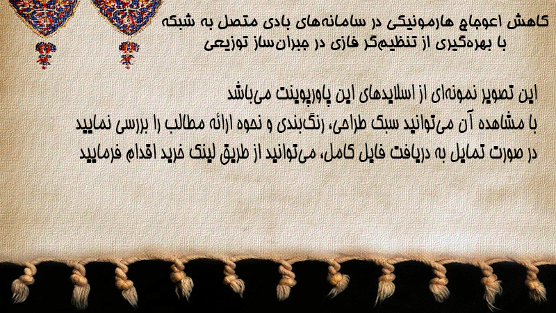 پاورپوینت کاهش اعوجاج هارمونیکی در سامانههای بادی متصل به شبکه با بهرهگیری از تنظیمگر فازی در جبرانساز توزیعی