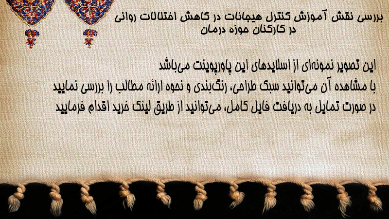 پاورپوینت بررسی نقش آموزش کنترل هیجانات در کاهش اختلالات روانی در کارکنان حوزه درمان