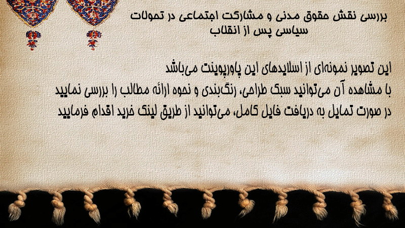 پاورپوینت بررسی نقش حقوق مدنی و مشارکت اجتماعی در تحولات سیاسی پس از انقلاب