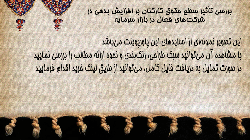 پاورپوینت بررسی تأثیر سطح حقوق کارکنان بر افزایش بدهی در شرکتهای فعال در بازار سرمایه