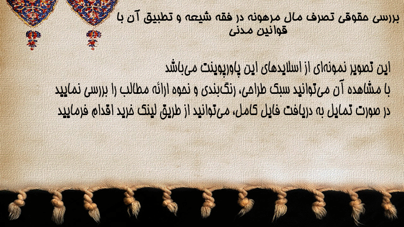 پاورپوینت بررسی حقوقی تصرف مال مرهونه در فقه شیعه و تطبیق آن با قوانین مدنی