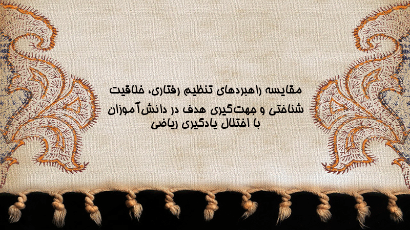 پاورپوینت مقایسه راهبردهای تنظیم رفتاری، خلاقیت شناختی و جهتگیری هدف در دانشآموزان با اختلال یادگیری ریاضی