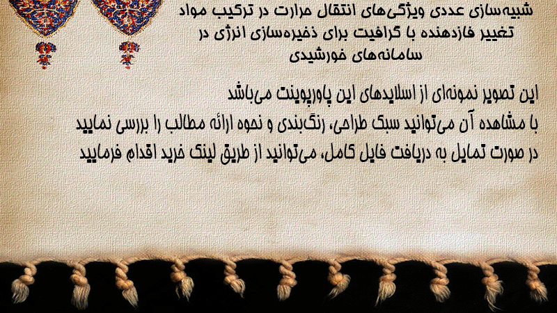 پاورپوینت شبیهسازی عددی ویژگیهای انتقال حرارت در ترکیب مواد تغییر فازدهنده با گرافیت برای ذخیرهسازی انرژی در سامانههای خورشیدی