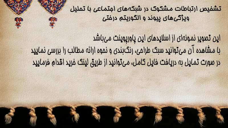 پاورپوینت تشخیص ارتباطات مشکوک در شبکههای اجتماعی با تحلیل ویژگیهای پیوند و الگوریتم درختی