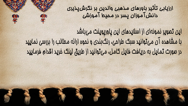 پاورپوینت ارزیابی تأثیر باورهای مذهبی والدین بر نگرشپذیری دانشآموزان پسر در محیط آموزشی