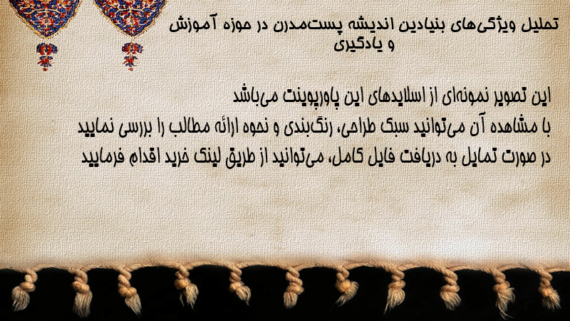 پاورپوینت تحلیل ویژگیهای بنیادین اندیشه پستمدرن در حوزه آموزش و یادگیری