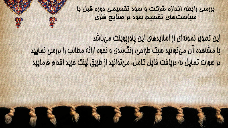 پاورپوینت بررسی رابطه اندازه شرکت و سود تقسیمی دوره قبل با سیاستهای تقسیم سود در صنایع فلزی
