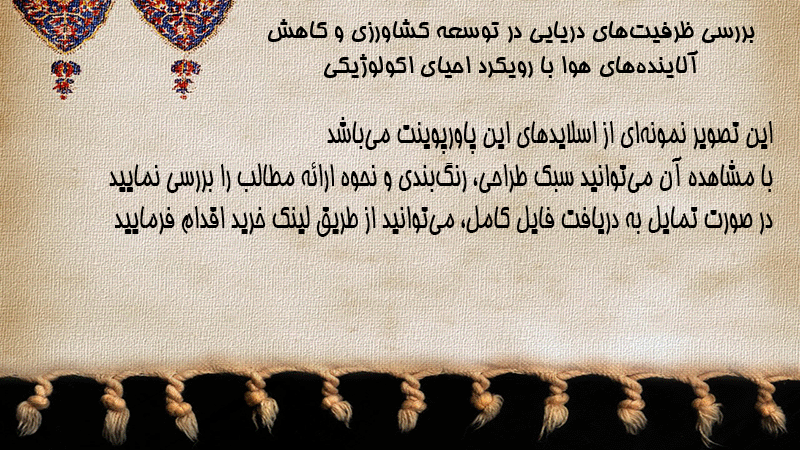 پاورپوینت بررسی ظرفیتهای دریایی در توسعه کشاورزی و کاهش آلایندههای هوا با رویکرد احیای اکولوژیکی