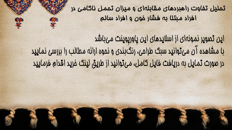 پاورپوینت تحلیل تفاوت راهبردهای مقابلهای و میزان تحمل ناکامی در افراد مبتلا به فشار خون و افراد سالم