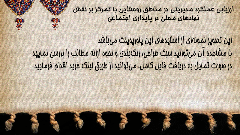 پاورپوینت ارزیابی عملکرد مدیریتی در مناطق روستایی با تمرکز بر نقش نهادهای محلی در پایداری اجتماعی