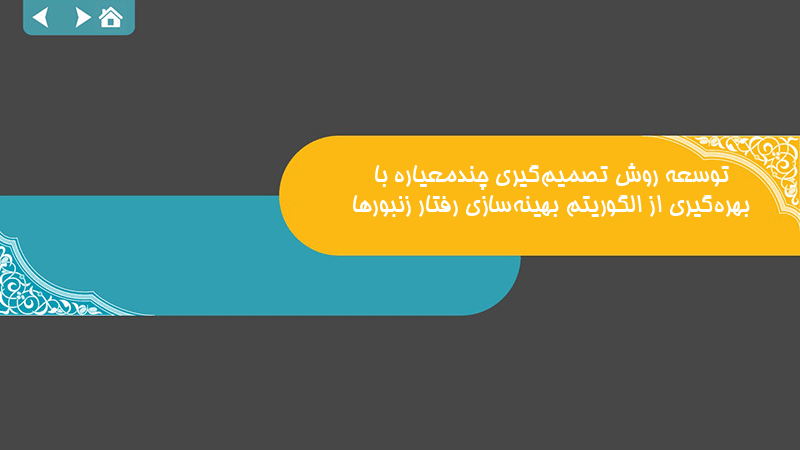 پاورپوینت توسعه روش تصمیمگیری چندمعیاره با بهرهگیری از الگوریتم بهینهسازی رفتار زنبورها