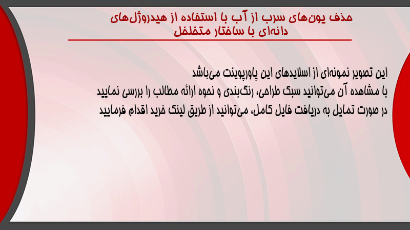 پاورپوینت حذف یونهای سرب از آب با استفاده از هیدروژلهای دانهای با ساختار متخلخل