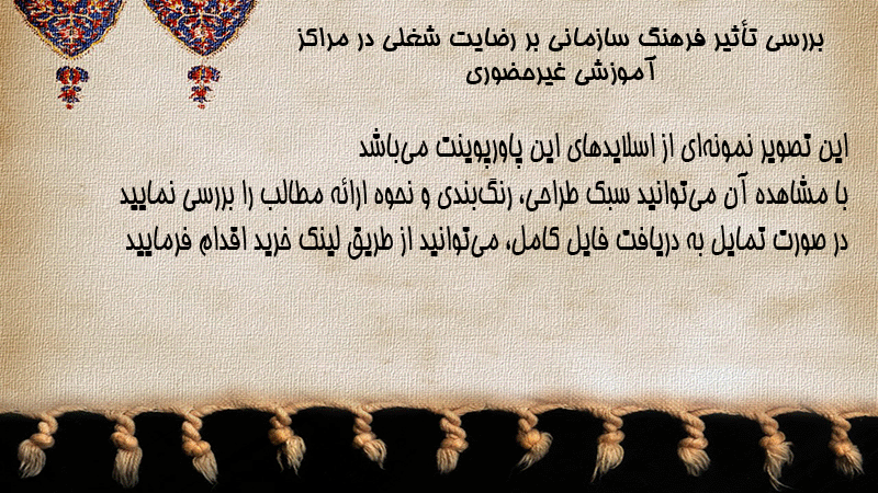 پاورپوینت بررسی تأثیر فرهنگ سازمانی بر رضایت شغلی در مراکز آموزشی غیرحضوری