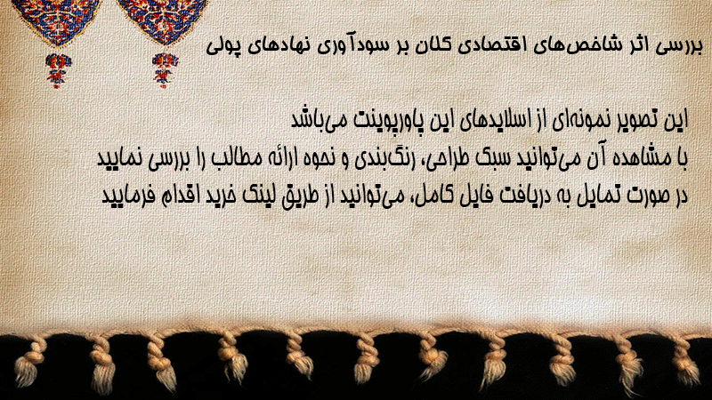 پاورپوینت بررسی اثر شاخصهای اقتصادی کلان بر سودآوری نهادهای پولی
