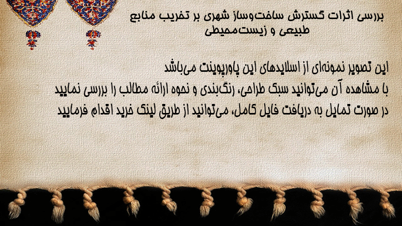 پاورپوینت بررسی اثرات گسترش ساختوساز شهری بر تخریب منابع طبیعی و زیستمحیطی