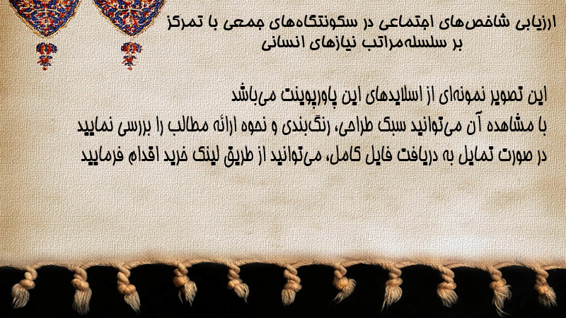 پاورپوینت ارزیابی شاخصهای اجتماعی در سکونتگاههای جمعی با تمرکز بر سلسلهمراتب نیازهای انسانی