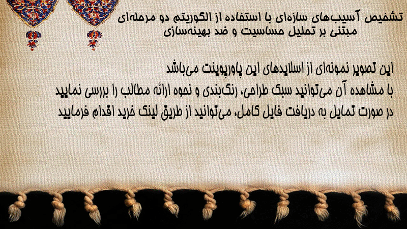 پاورپوینت تشخیص آسیبهای سازهای با استفاده از الگوریتم دو مرحلهای مبتنی بر تحلیل حساسیت و ضد بهینهسازی