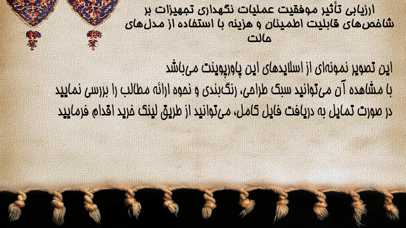 پاورپوینت ارزیابی تأثیر موفقیت عملیات نگهداری تجهیزات بر شاخصهای قابلیت اطمینان و هزینه با استفاده از مدلهای حالت