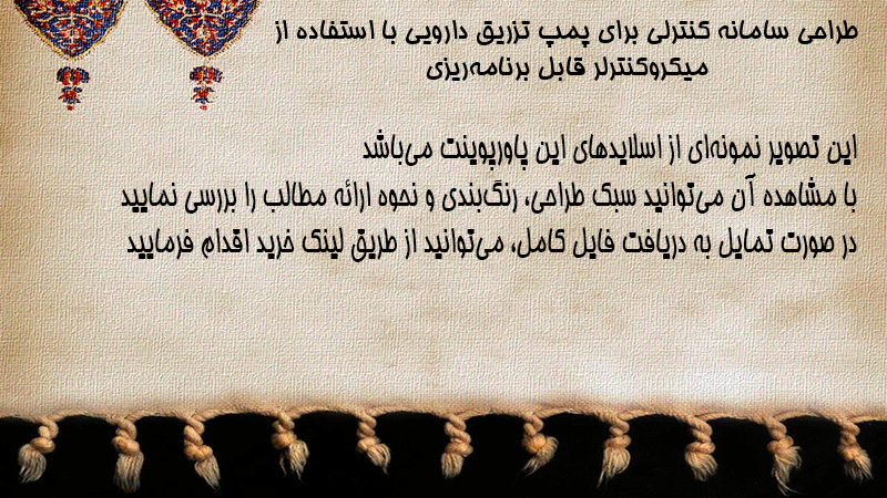 پاورپوینت طراحی سامانه کنترلی برای پمپ تزریق دارویی با استفاده از میکروکنترلر قابل برنامهریزی