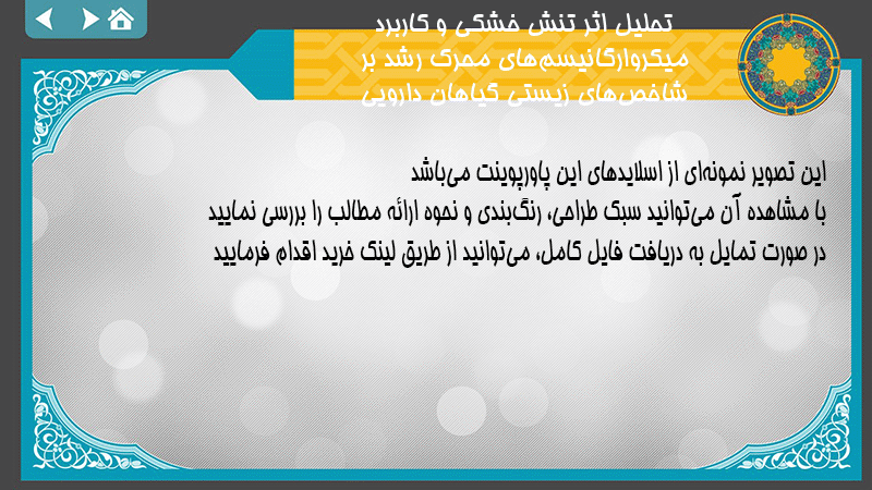 پاورپوینت تحلیل اثر تنش خشکی و کاربرد میکروارگانیسمهای محرک رشد بر شاخصهای زیستی گیاهان دارویی