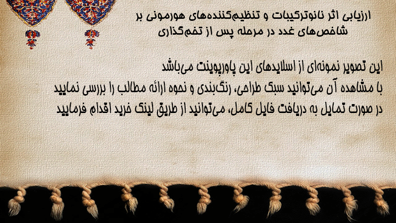 پاورپوینت ارزیابی اثر نانوترکیبات و تنظیمکنندههای هورمونی بر شاخصهای غدد در مرحله پس از تخمگذاری