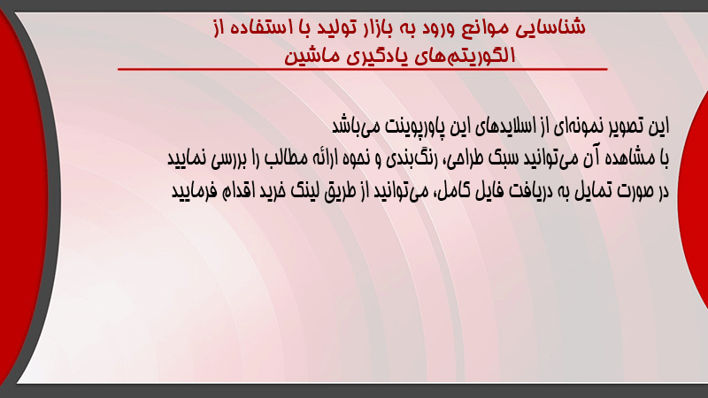 پاورپوینت شناسایی موانع ورود به بازار تولید با استفاده از الگوریتمهای یادگیری ماشین