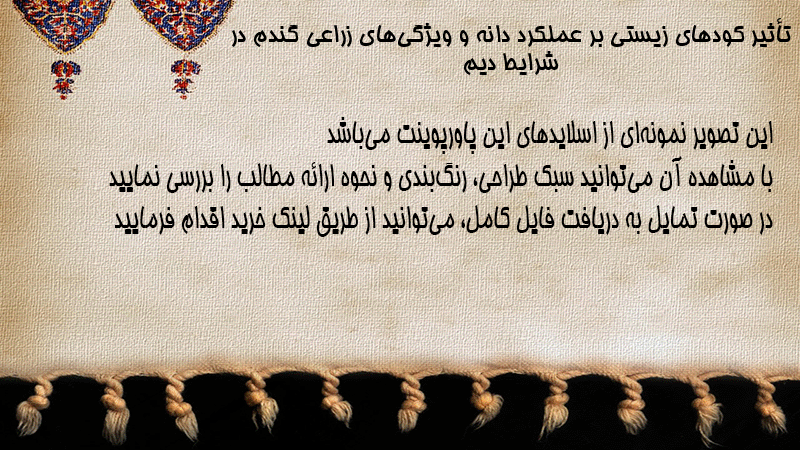 پاورپوینت تأثیر کودهای زیستی بر عملکرد دانه و ویژگیهای زراعی گندم در شرایط دیم