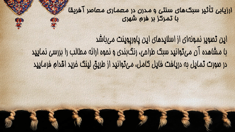 پاورپوینت ارزیابی تأثیر سبکهای سنتی و مدرن در معماری معاصر آفریقا با تمرکز بر فرم شهری