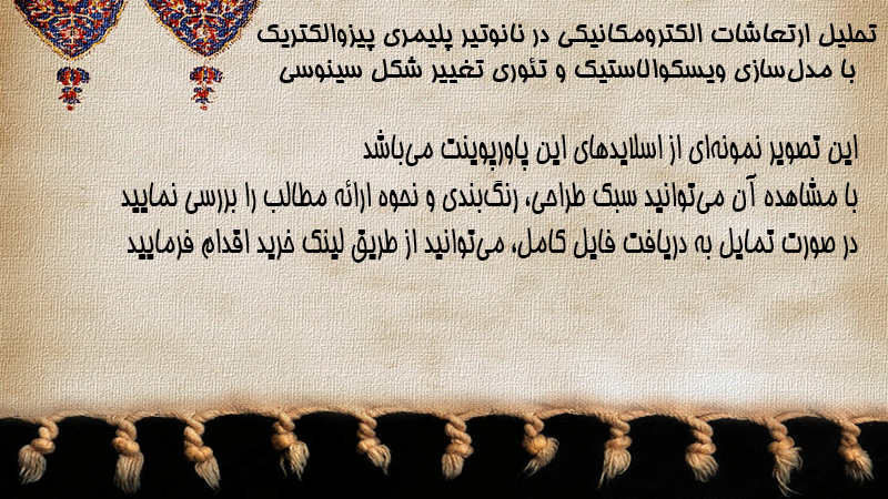 پاورپوینت تحلیل ارتعاشات الکترومکانیکی در نانوتیر پلیمری پیزوالکتریک با مدلسازی ویسکوالاستیک و تئوری تغییر شکل سینوسی