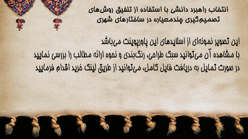پاورپوینت انتخاب راهبرد دانشی با استفاده از تلفیق روشهای تصمیمگیری چندمعیاره در ساختارهای شهری