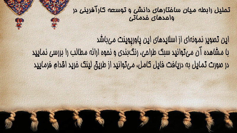 پاورپوینت تحلیل رابطه میان ساختارهای دانشی و توسعه کارآفرینی در واحدهای خدماتی