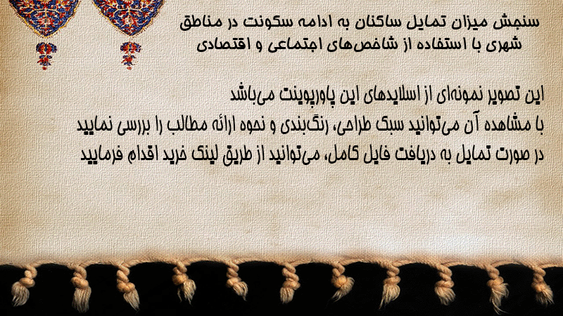 پاورپوینت سنجش میزان تمایل ساکنان به ادامه سکونت در مناطق شهری با استفاده از شاخصهای اجتماعی و اقتصادی