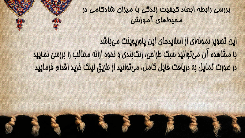 پاورپوینت بررسی رابطه ابعاد کیفیت زندگی با میزان شادکامی در محیطهای آموزشی