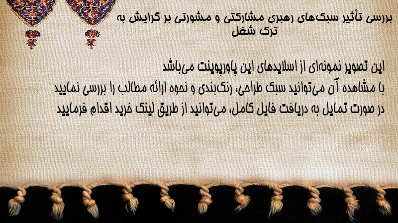 پاورپوینت بررسی تأثیر سبکهای رهبری مشارکتی و مشورتی بر گرایش به ترک شغل
