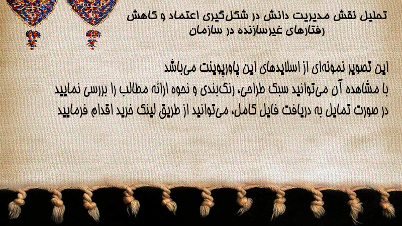 پاورپوینت تحلیل نقش مدیریت دانش در شکلگیری اعتماد و کاهش رفتارهای غیرسازنده در سازمان