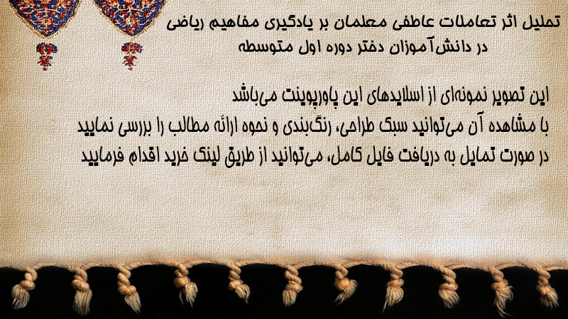 پاورپوینت تحلیل اثر تعاملات عاطفی معلمان بر یادگیری مفاهیم ریاضی در دانشآموزان دختر دوره اول متوسطه