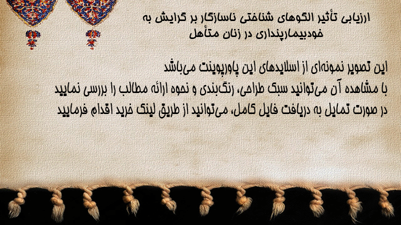 پاورپوینت ارزیابی تأثیر الگوهای شناختی ناسازگار بر گرایش به خودبیمارپنداری در زنان متأهل