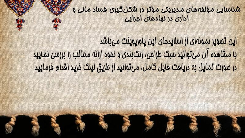 پاورپوینت شناسایی مؤلفههای مدیریتی مؤثر در شکلگیری فساد مالی و اداری در نهادهای اجرایی